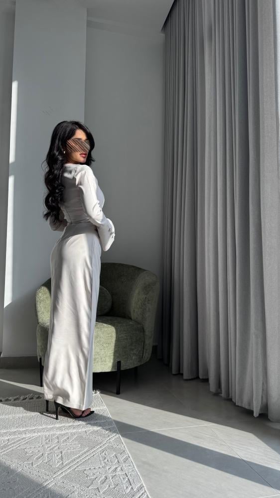 فــســتــان بــالــون الـــكــريـــمـــي مـع فـــتــحــة بالــخــلف و إضــافــة ازرار بالإكــمــام بــقـــمــاش - تــفــتــه ســتــرتـــش - .