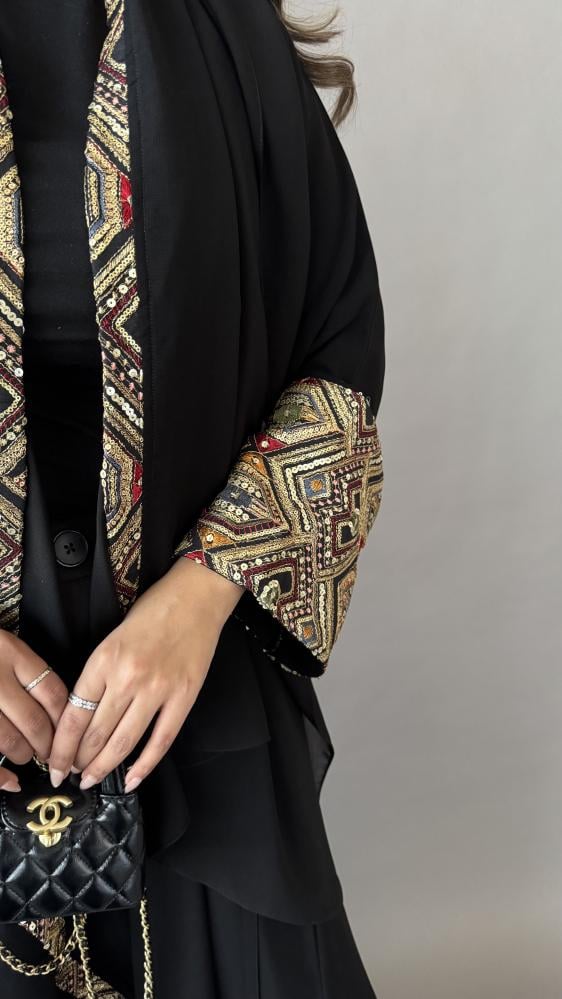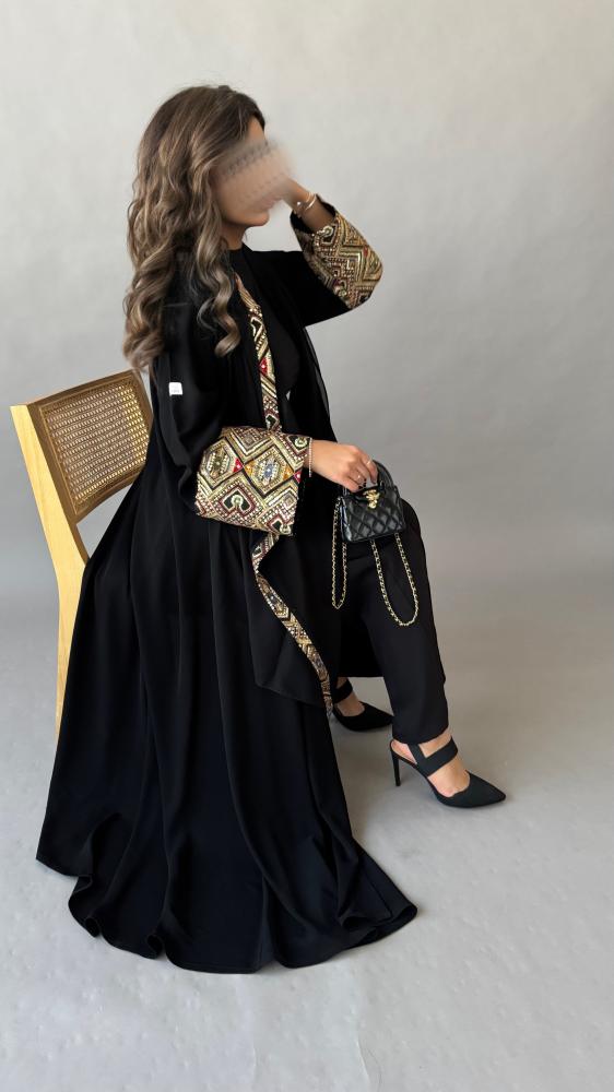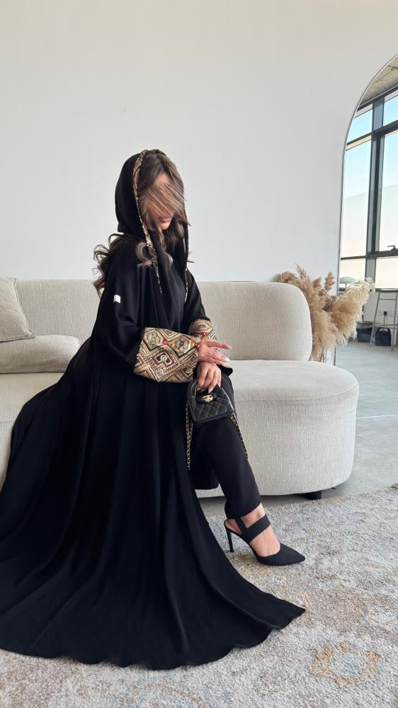 عــبايـــه ســــوداء بـتطـريز هــندي بـقــماش - كـــريــب مــلكــي -