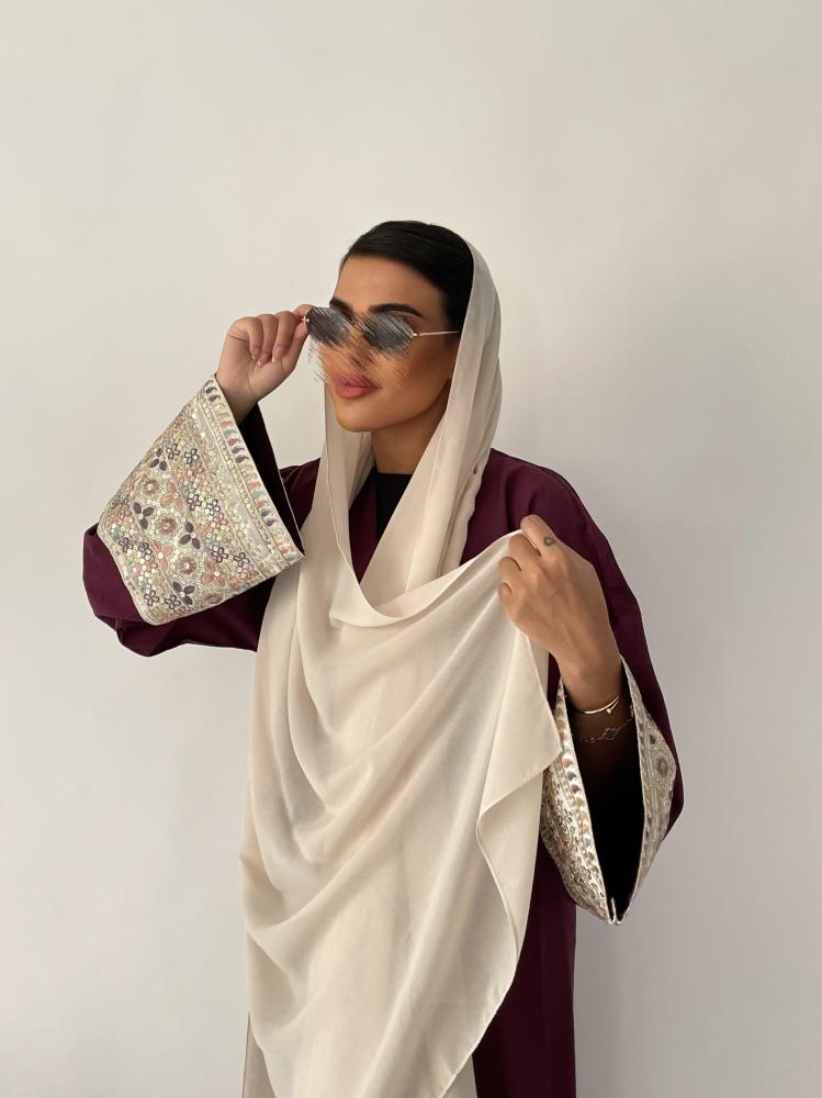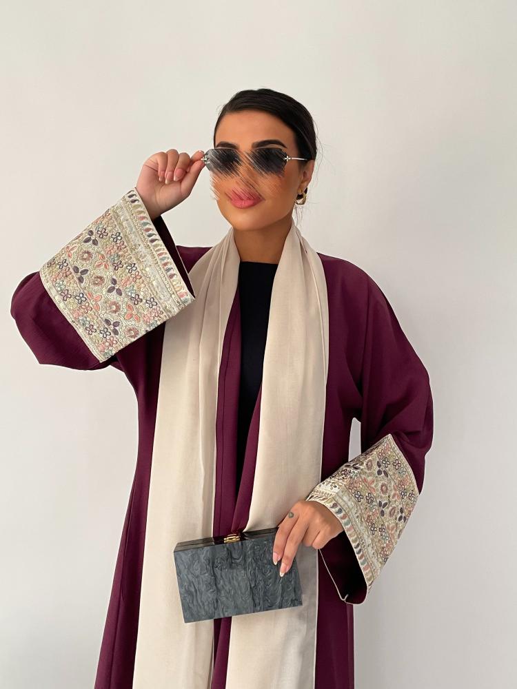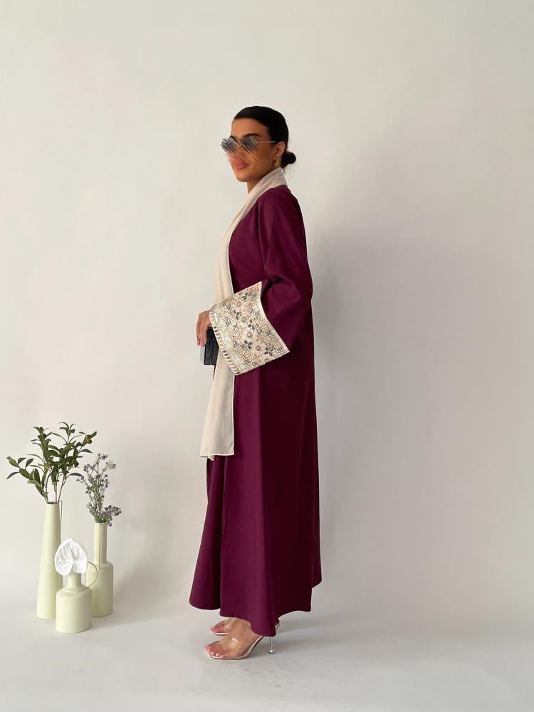 عباية صيفية بقماش كريب وكلفة مطرزه على الاكمام