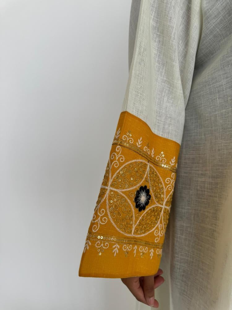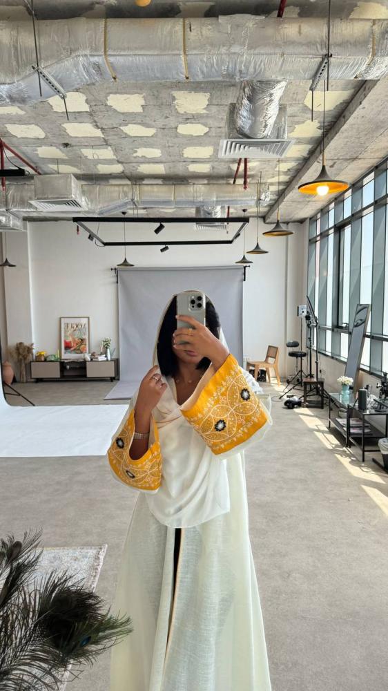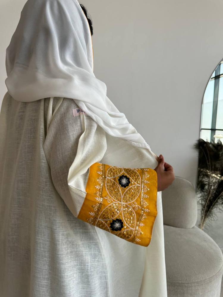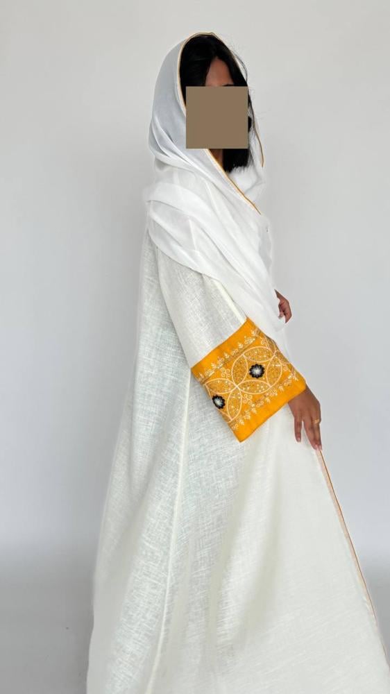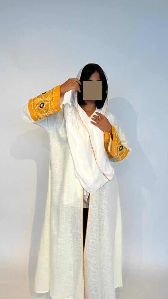 التفاصيل :عبايه ملونة بقماش لنن بالاضافة الى تدخيلات في الكم القصة : نص كلوش*يمكن التعديل على لون الطرحه وقصة العباية🌷🐚🪄💛