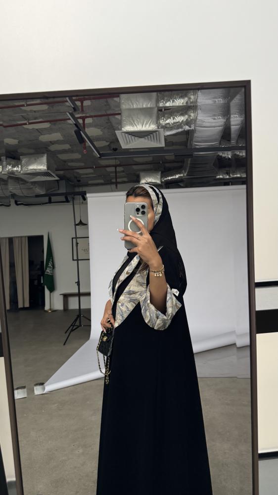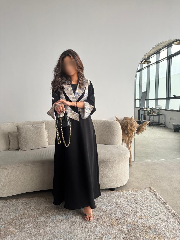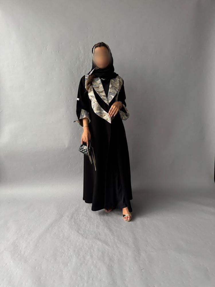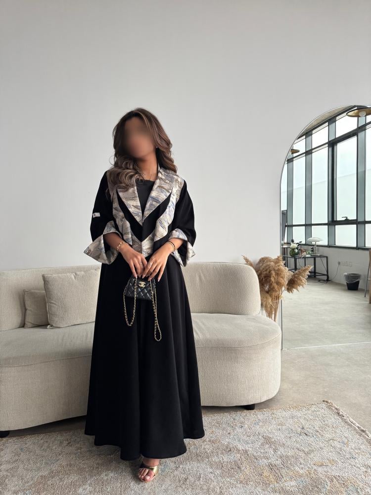 عبايـــة ســـوداء بقماش كـــريب مـــلكي كـــوري