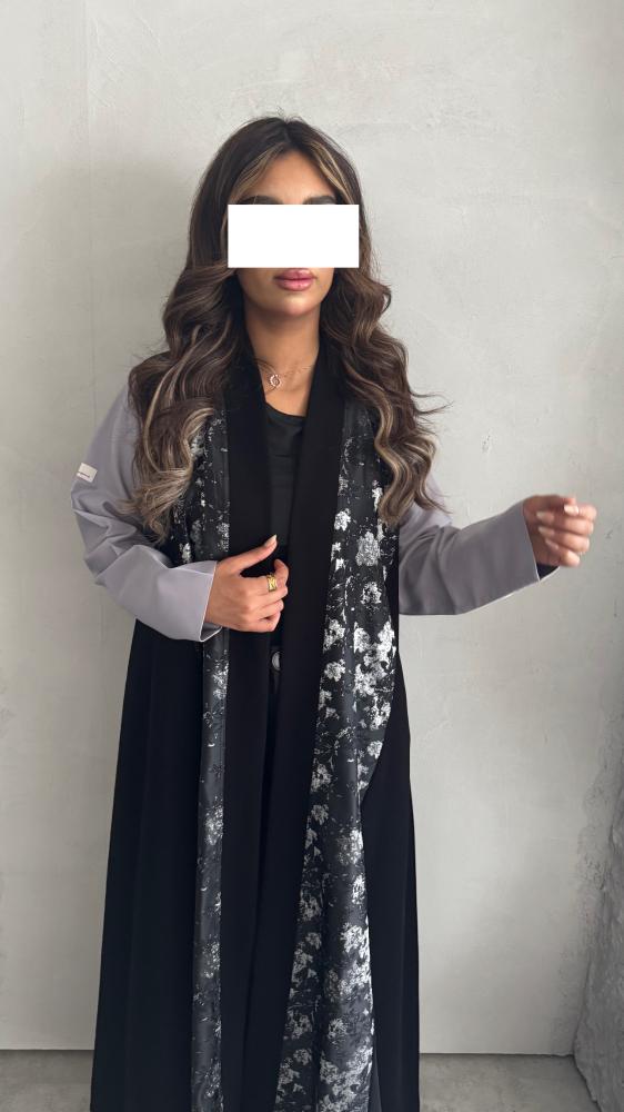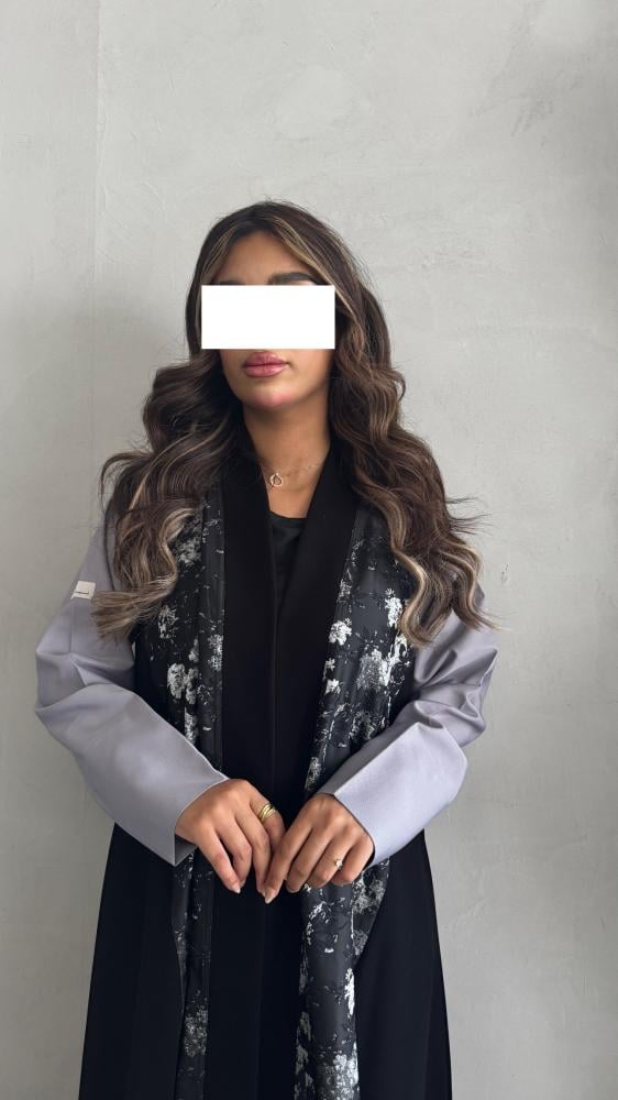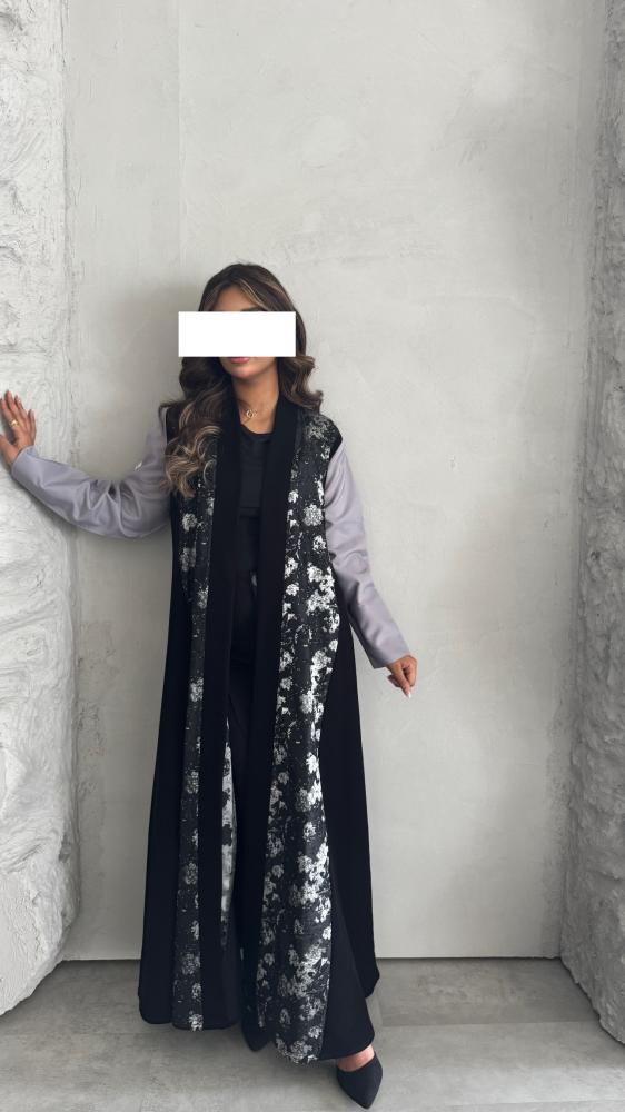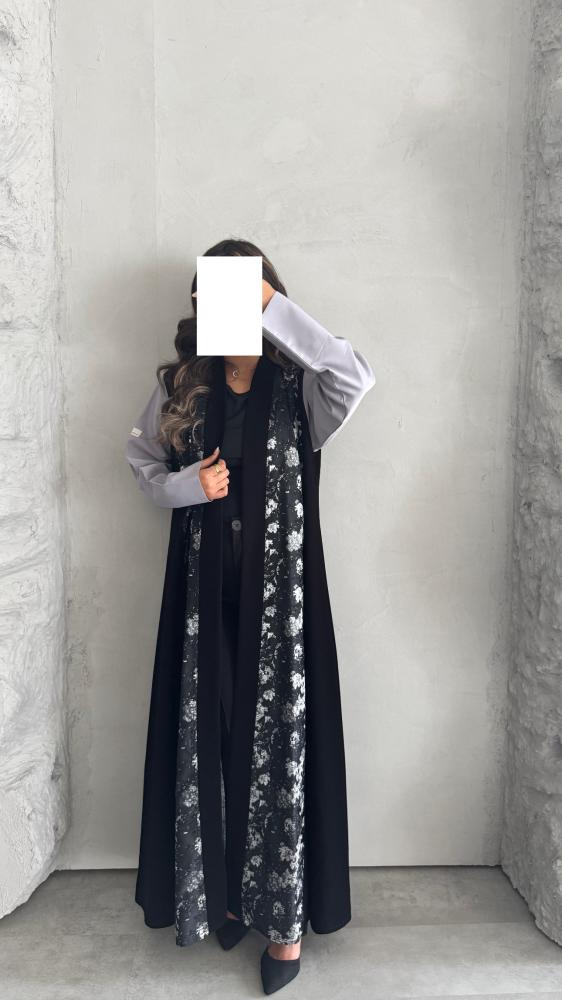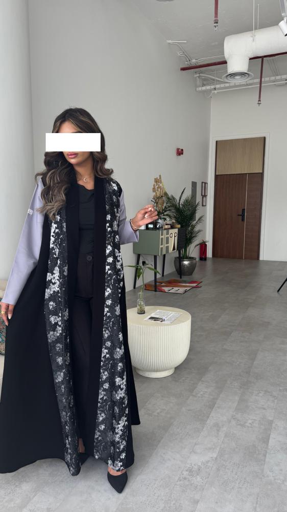 عبايــة ســوداء بـقماش كــريــب مــلــكــي بـإضافــة تدخيلات جـاكــار