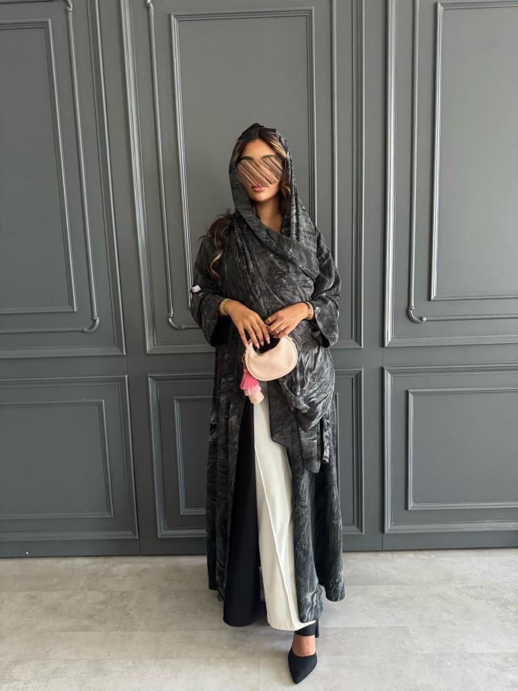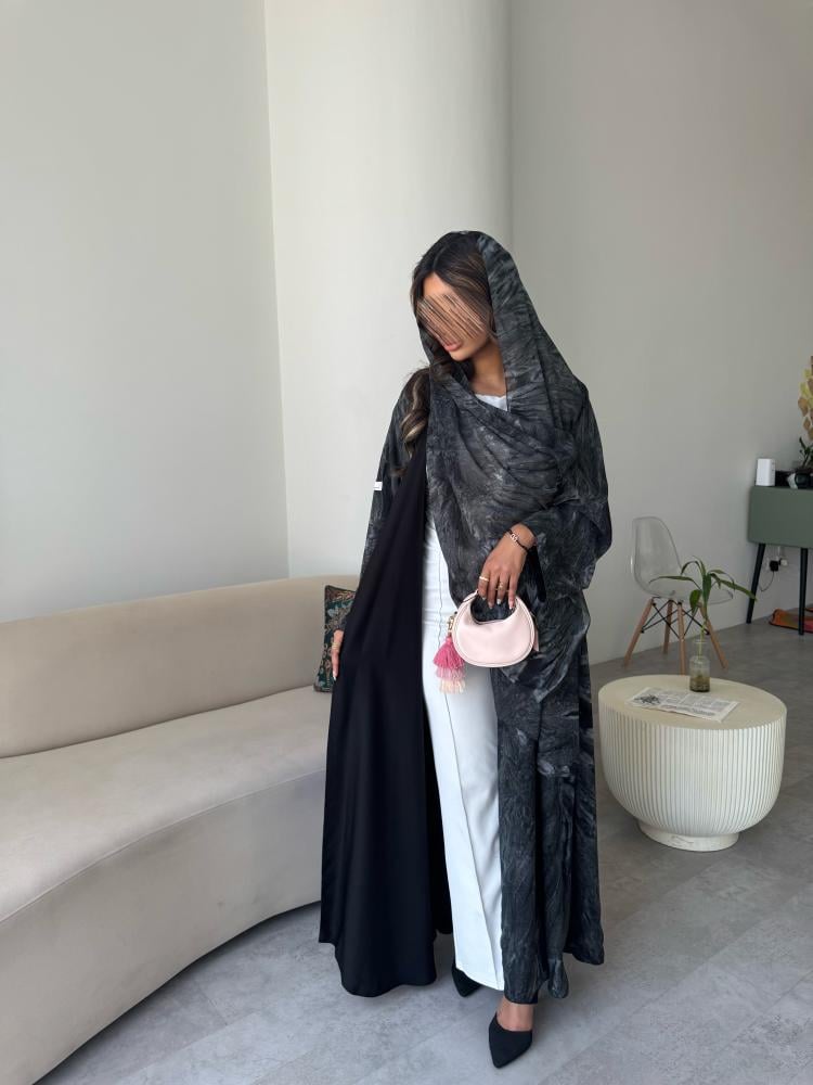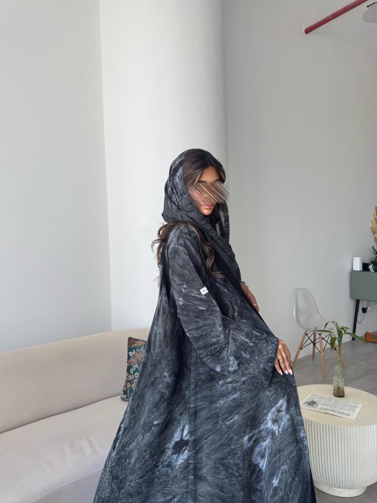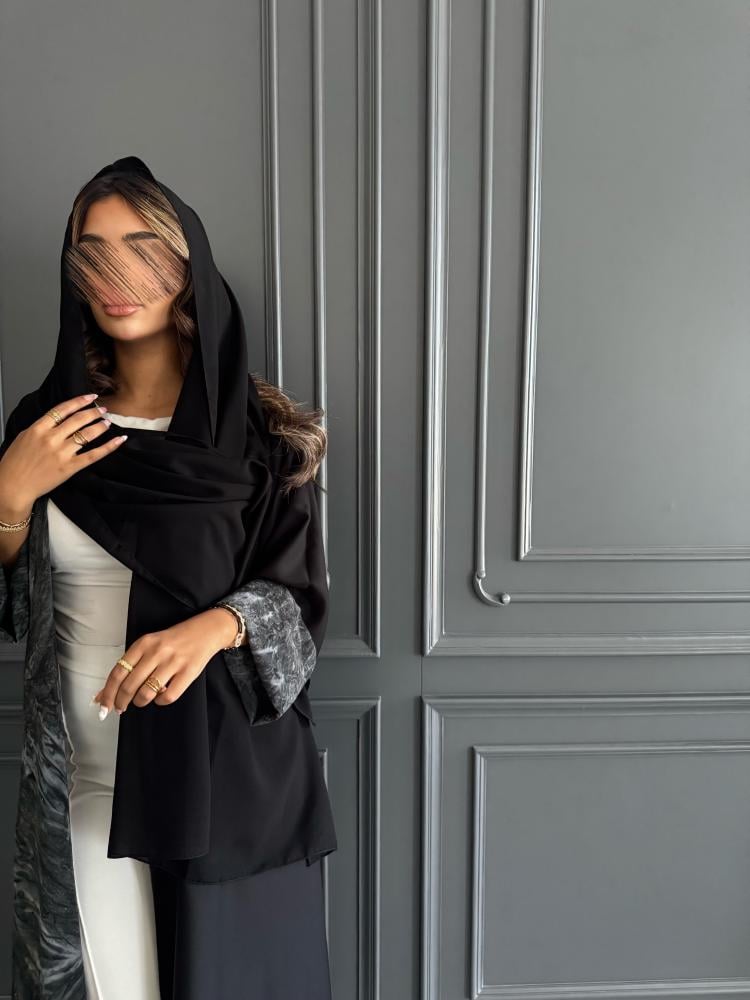 عـباية صيفية دبـل فيس بــقــمــاش شيفون وبلاك بيري ، بـقصـة: نـص كلـوش ، بمزيج من عدة اللوان مختلفة ، بـطــرحـه : ســوداء و شـيـفــون " طـرحـتـيـن " .